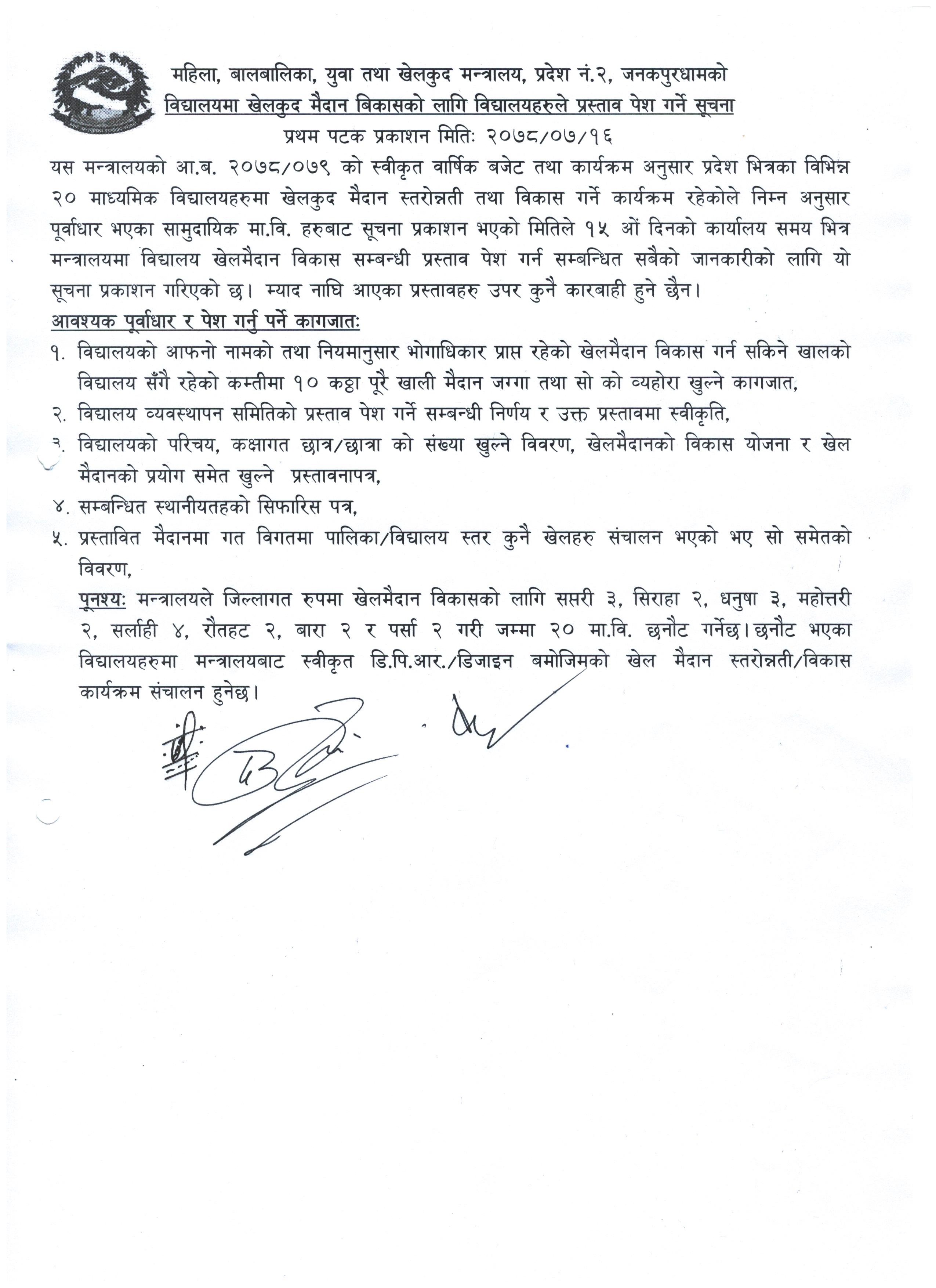 सिफारिसको पुन: म्याद थप सम्बन्धमा ।